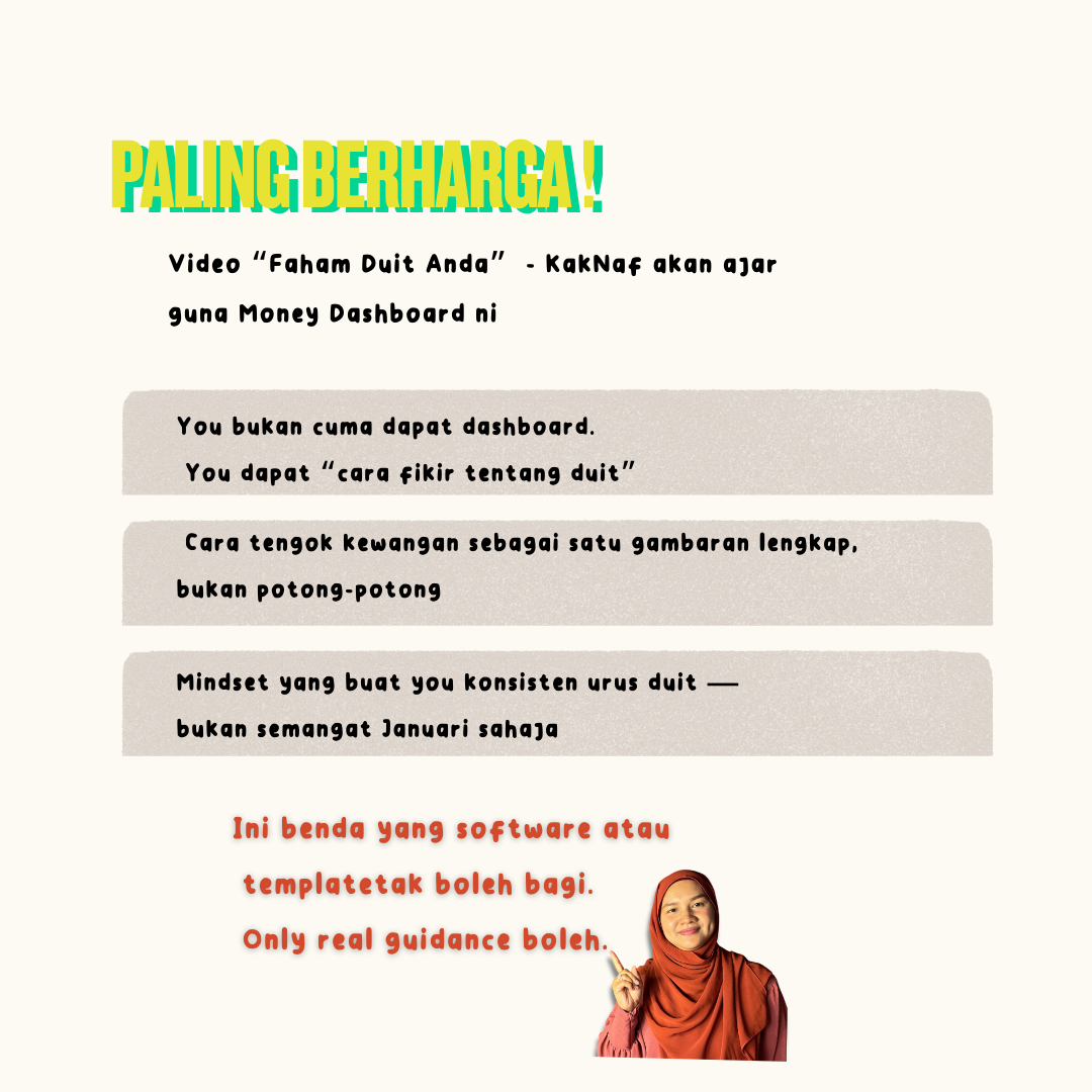 Sebab tu KakNaf curate MONEY DASHBOARD ni supaya ia cover semua bahagian penting dalam satu tempat.