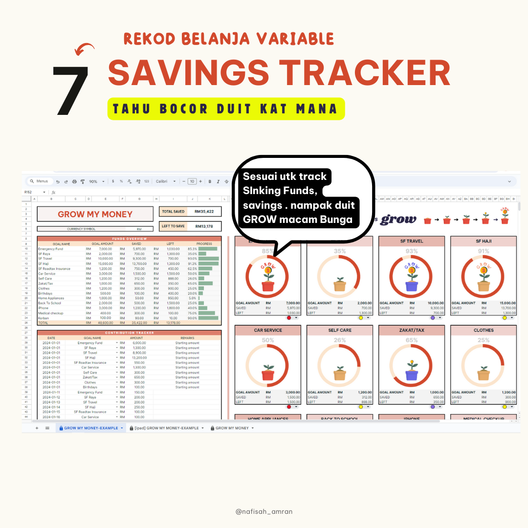 ada 7 TAB yg akan digunakan untuk setup & track kewangan .KakNaf dah curate sesuai utk semua, agar KEWANGAN hal duit kita rekod data, Ada DATA baru boleh faham duit & habit kewangan sendiri.